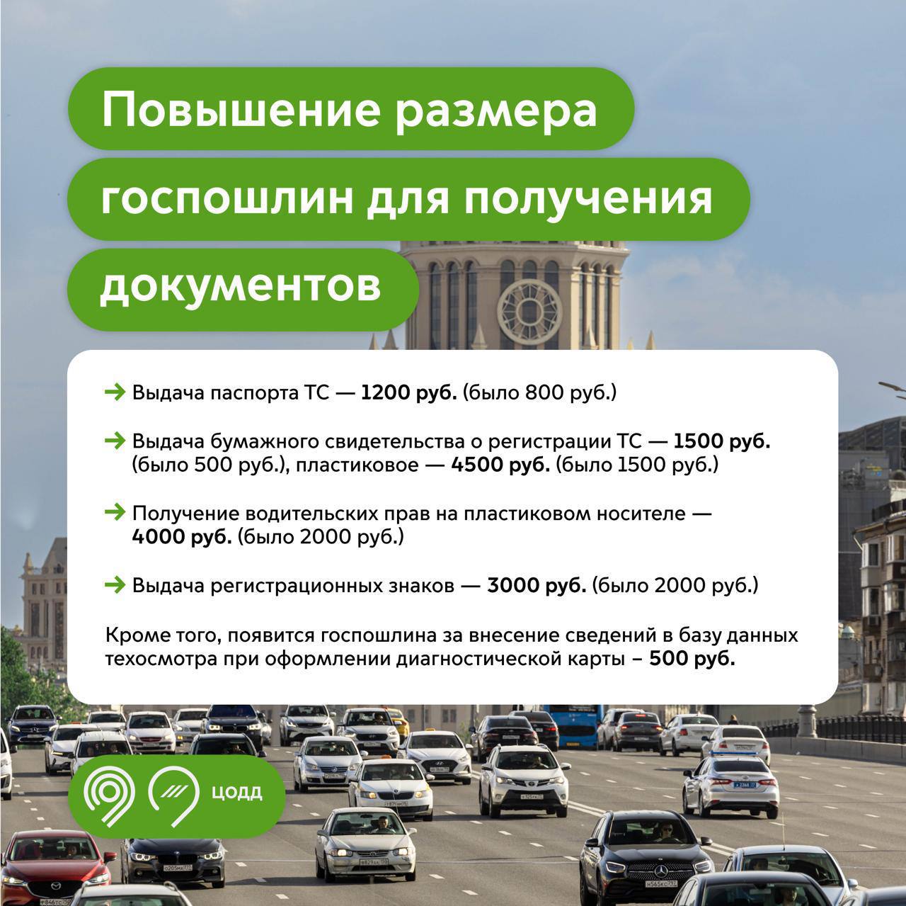 🔹 Повышают размеры госпошлин за получение водительских прав, оформление ПТС, регистрацию автомобиля и выдачу госномеров.