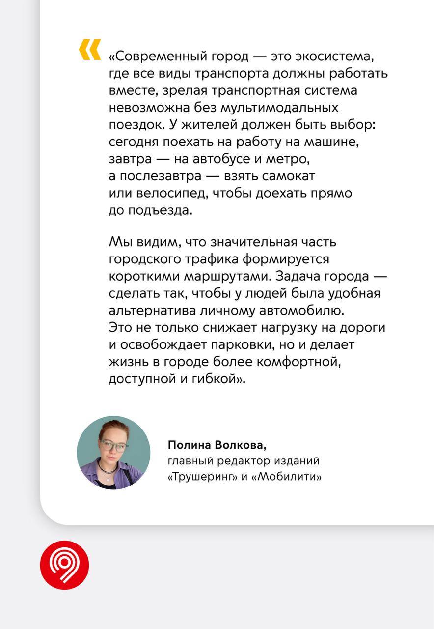 Каршеринг, электросамокаты и велосипеды стали важной частью городского транспорта. С их помощью вы можете создавать бесшовные мультимодальные маршруты и комбинировать несколько видов транспорта. Например, электробус с самокатом или метро с каршерингом.