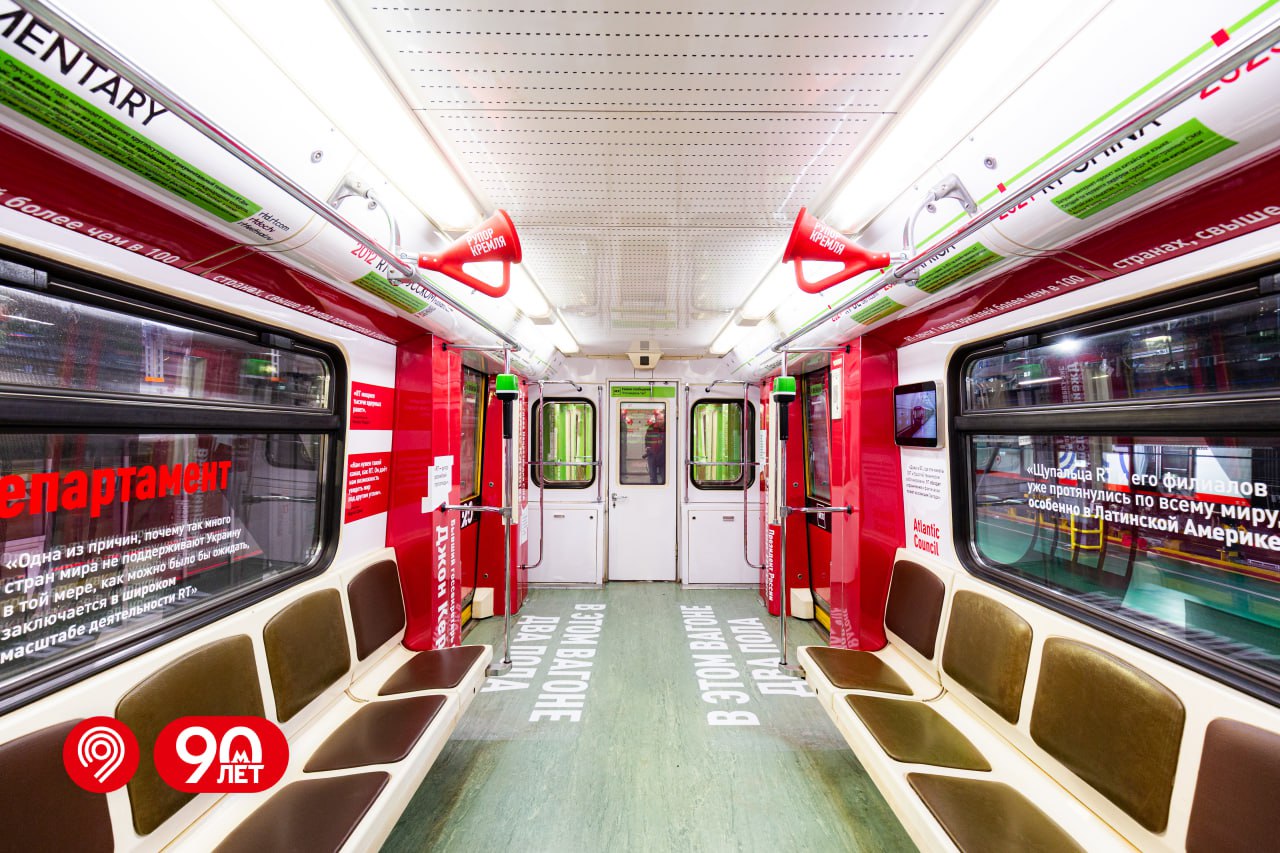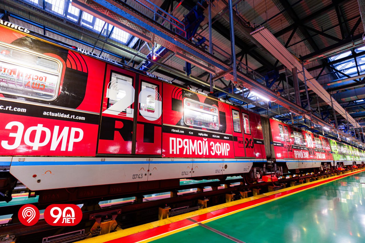 Вместе с телеканалом RT запустили брендированный состав в честь 20-летия телесети.