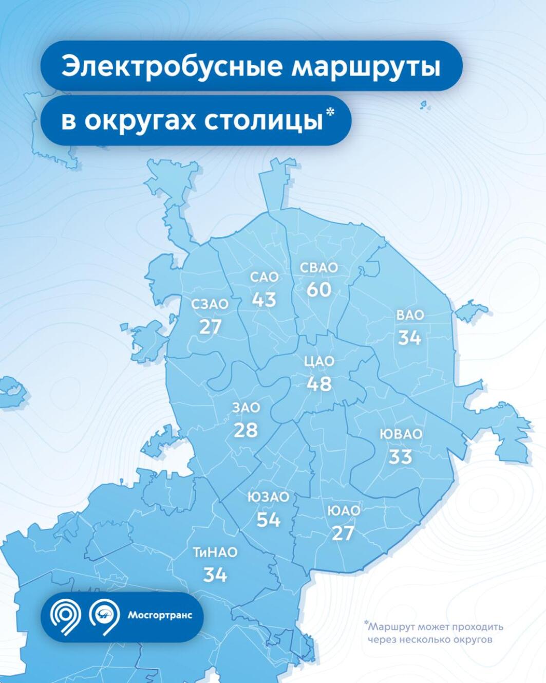 Сейчас больше всего электробусных маршрутов в округах: