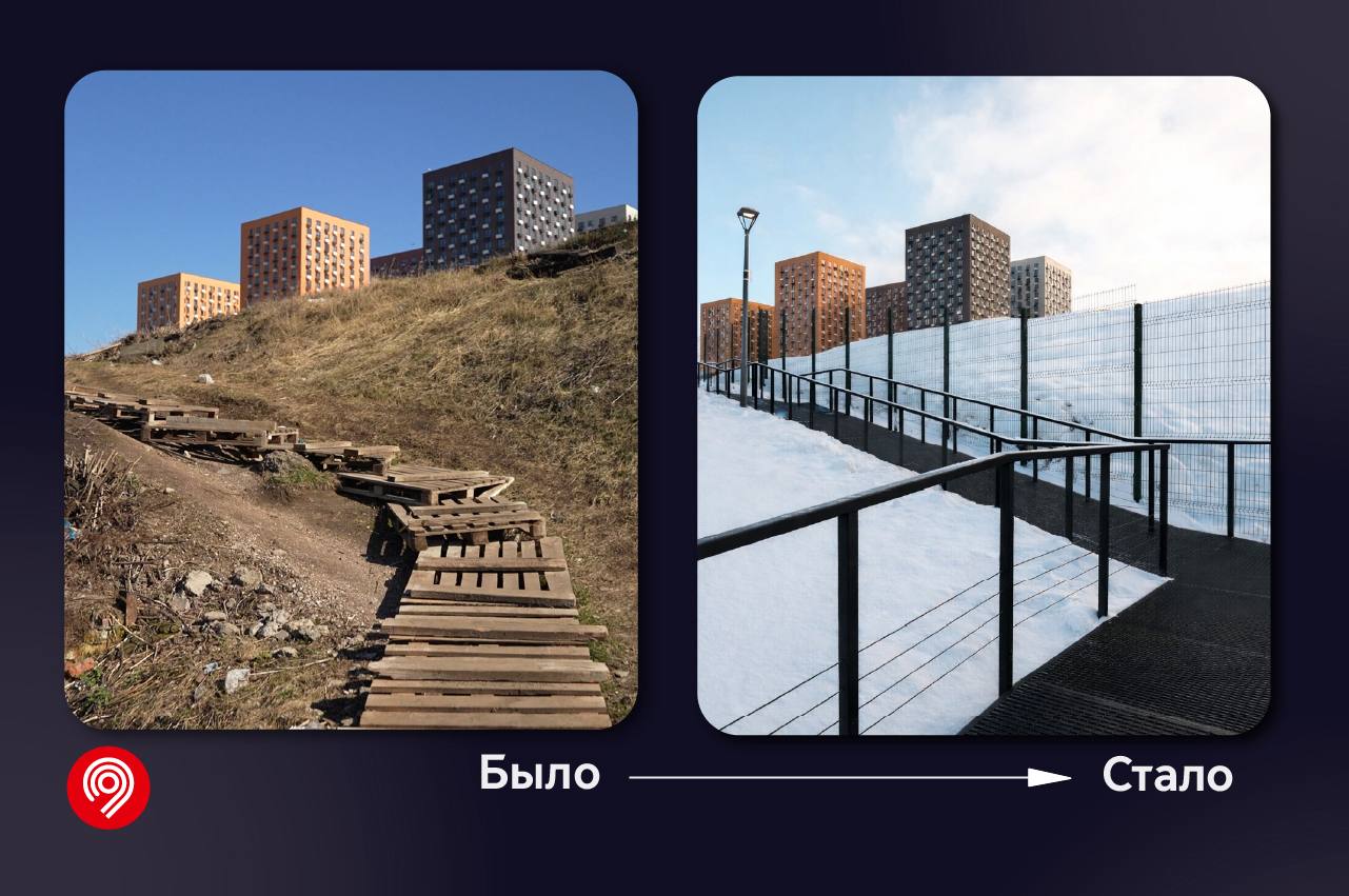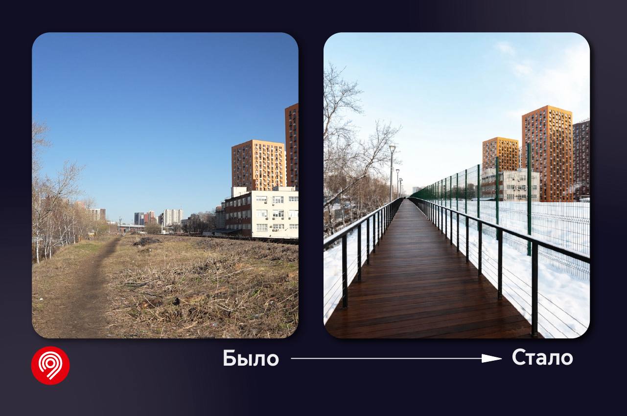 Главное изменение — здесь появилась безопасная, быстрая и комфортная пешеходная связь между жилыми кварталами и ж/д станциями. Работу проводили вместе с командой Комплекса городского хозяйства.