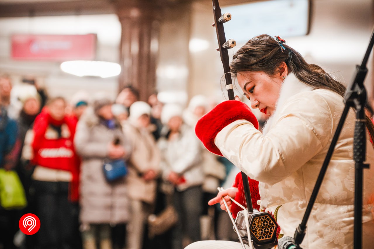 На площадке проекта «Музыка в метро» в аванзале станции «Курская» выступил коллектив из провинции Хэнань. Пассажиры увидели: