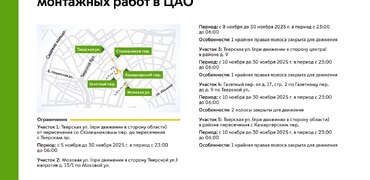 Ограничения движения в связи с проведением монтажных работ в ЦАО