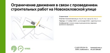 С 17 ноября 2025 г. до 6 января 2026 г. на участке Новохохловской улицы будет недоступна для движения 1 полоса