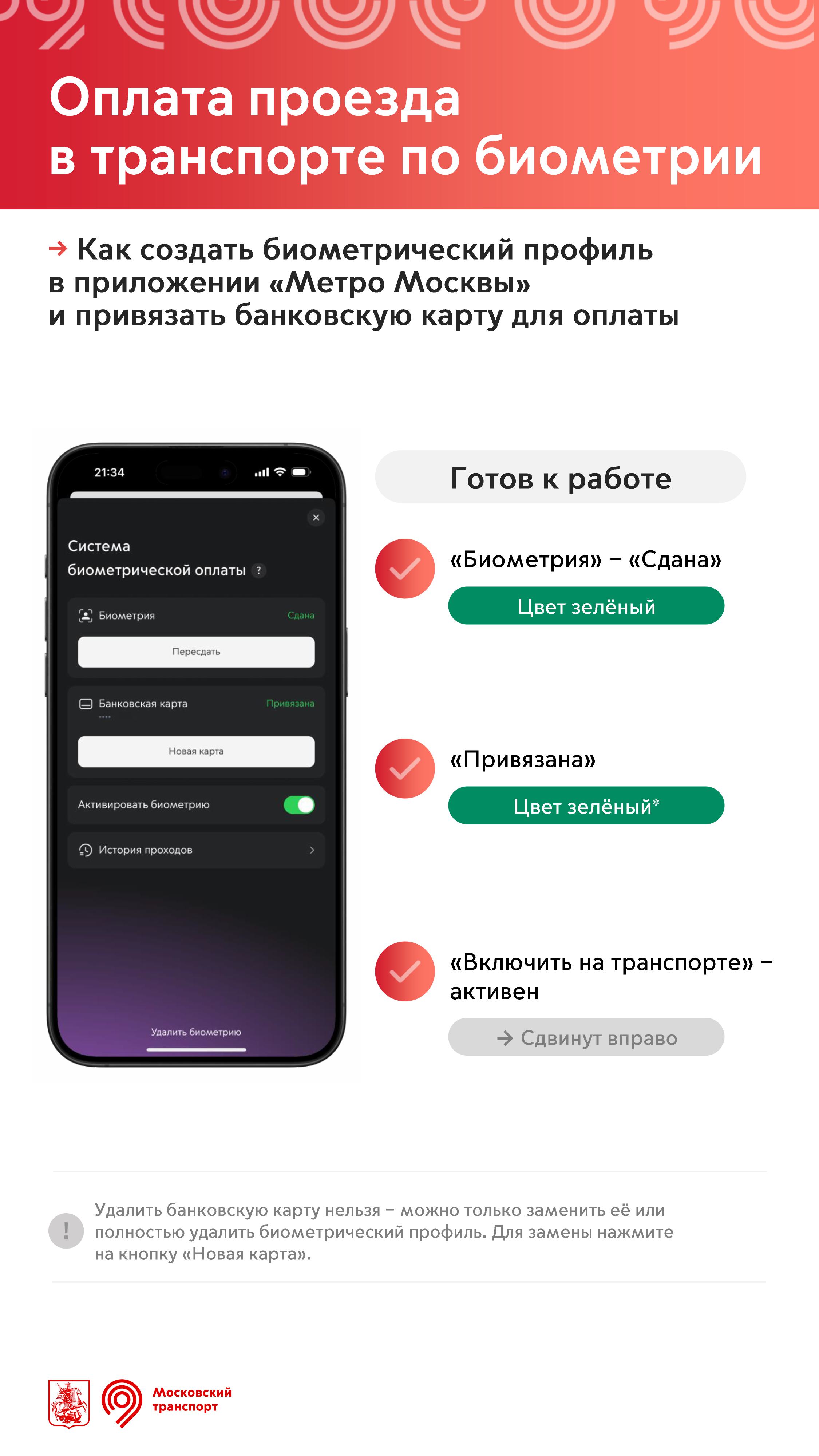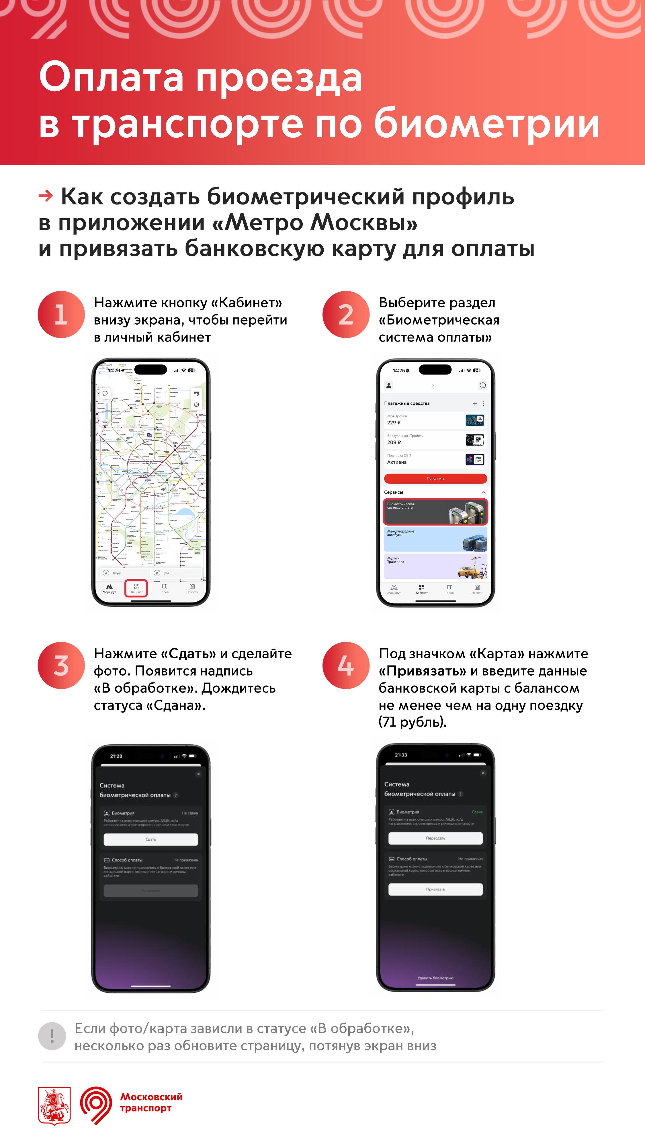 В октябре 2021 года в метро заработал сервис для оплаты проезда с помощью распознавания лица. Оплатить проезд бесконтактно можно на всех станциях метро, МЦК, речном транспорте и ж/д направлениях Аэроэкспресса.
